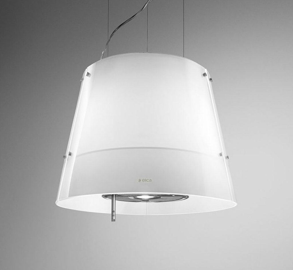 Com elegante acabamento em vidros brancos de fácil limpeza com a eficiente aspiração Evolution de 550 m3/hora que atua de forma extremamente silenciosa (de 42dB a 62dB), compõem uma solução ideal para aplicação em cozinhas integradas.