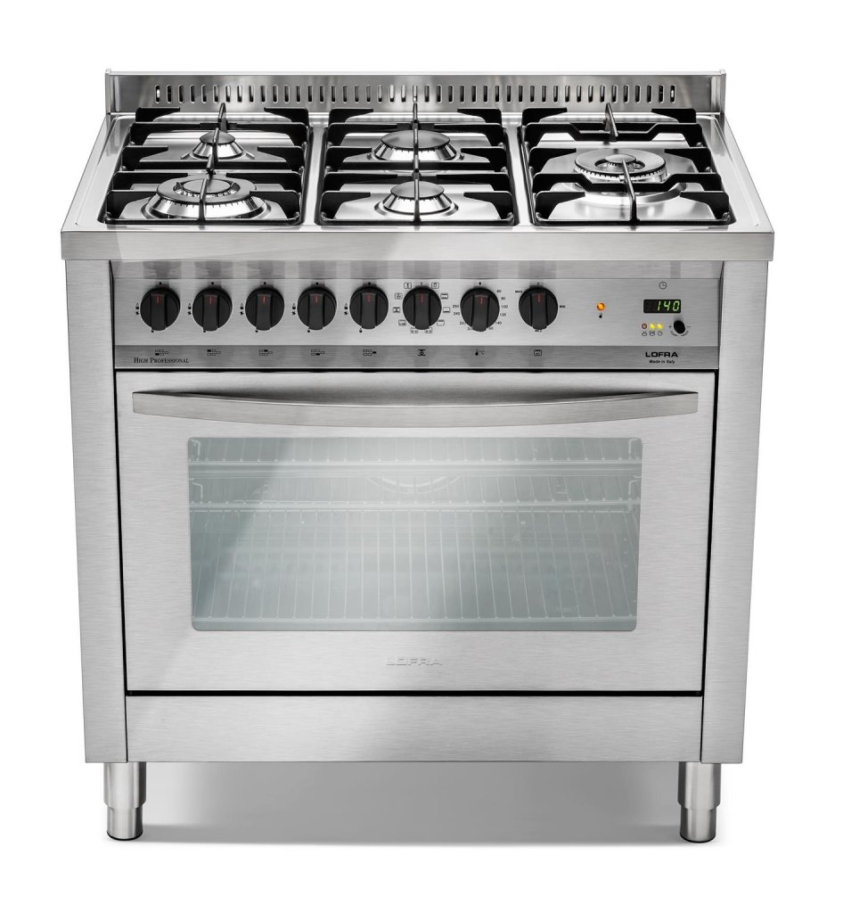 Com design profissional composto pelo acabamento todo em aço inox escovado não poroso, robustos botões na cor preto fosco, forno com refinado puxador curvo e a marca LOFRA estampada em alto relevo.