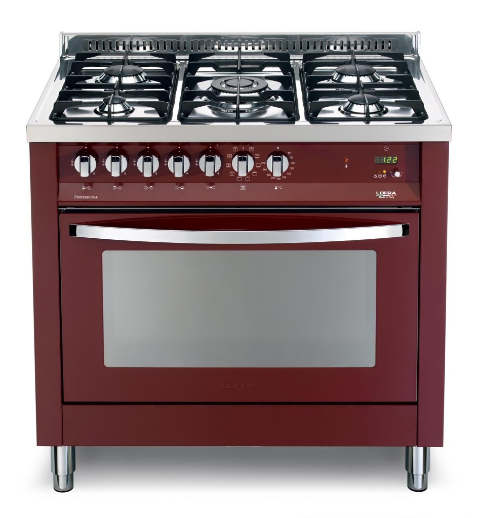 A requintada cor vinho combinada com a mesa em aço inox polido com robustos botões, puxador do forno e pés cromados formam uma combinação à altura das mais refinadas cozinhas.