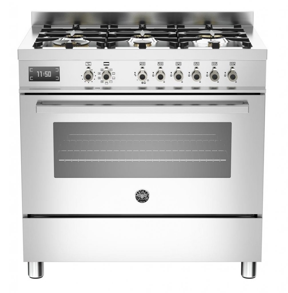 O fogão PRO90 é equipado com 6 queimadores profissionais Sabaf a gás em latão maciço, que oferecem ampla variação de chama para preparar com sucesso todos os tipos de receitas.
