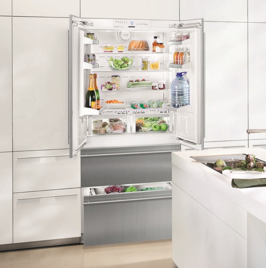 Sua porta e gavetas para revestir estão equipadas com puxadores e painéis em aço inox alemão Liebherr, criando uma perfeita integração do refrigerador com os móveis de sua cozinha planejada, sem frestas de ventilação.