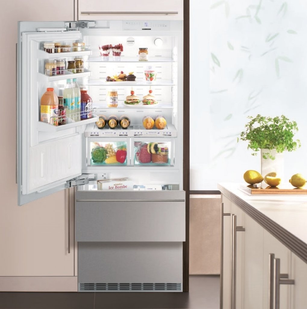 Sua porta e gavetas para revestir estão equipadas com puxadores e painéis em aço inox alemão Liebherr, criando uma perfeita integração do refrigerador com os móveis de sua cozinha planejada, sem frestas de ventilação.